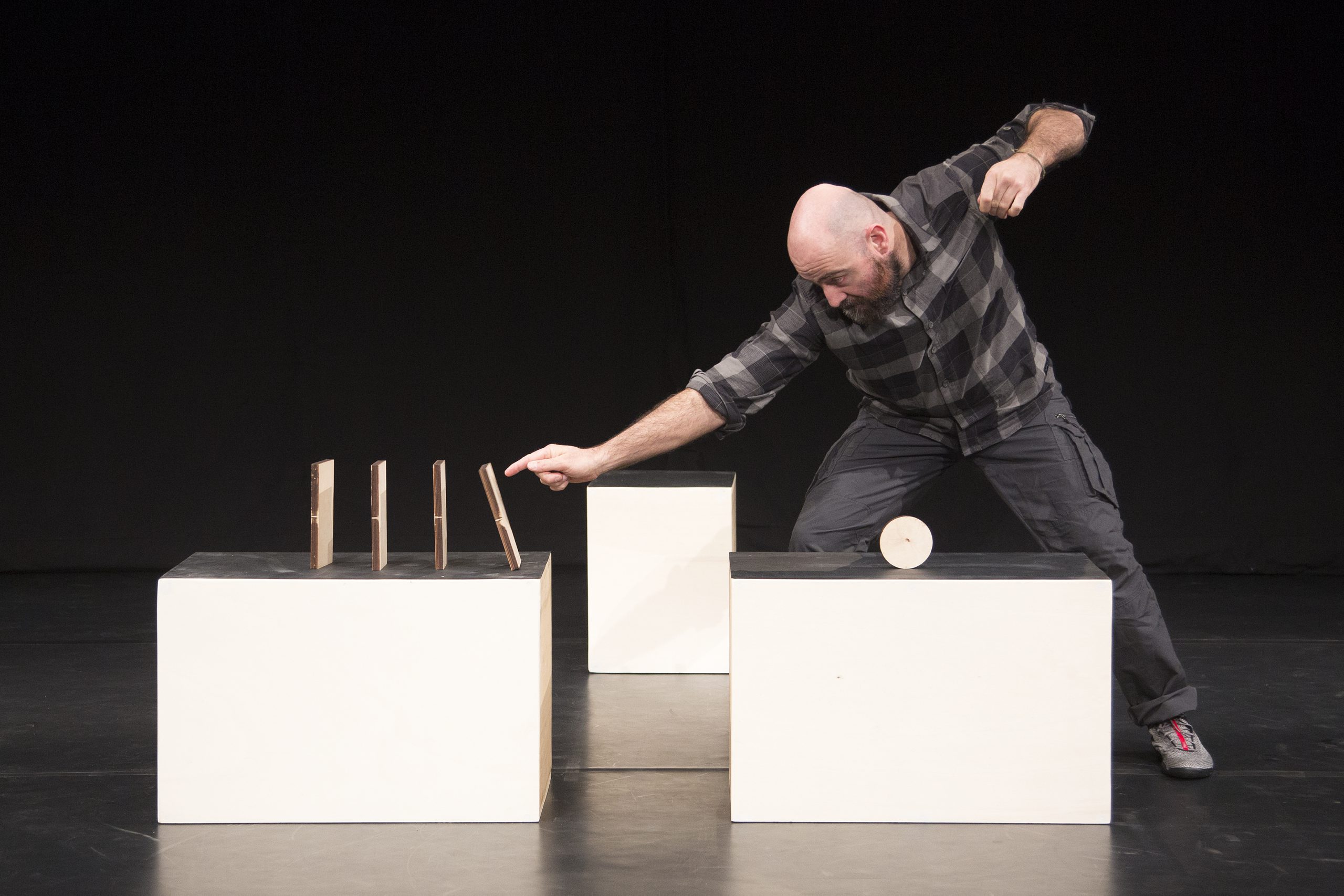 Costruttore di storie è uno spettacolo fatto di storie che si susseguono e alternano, e che finiscono tutte dentro la storia di uomo che racconta una storia: la storia di un ponte che deve attraversare un grande fiume.