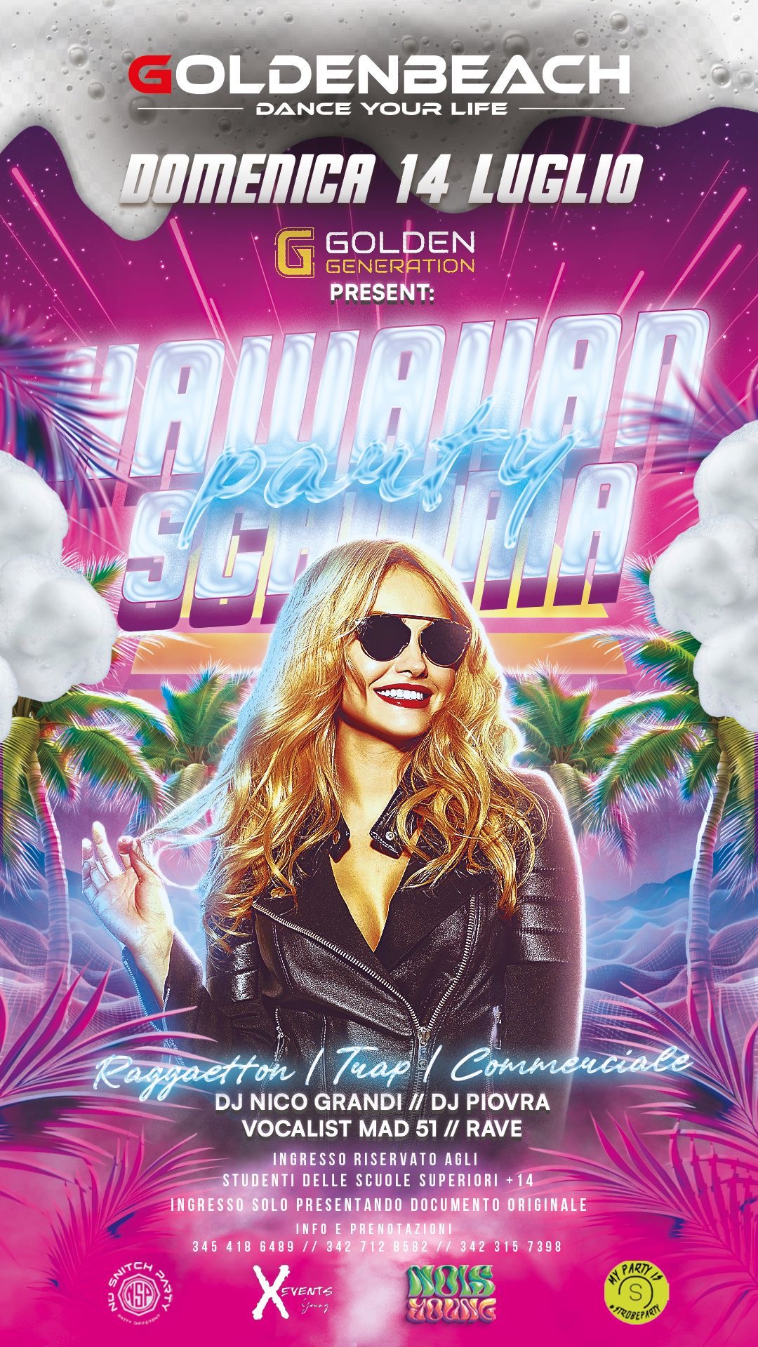 Domenica 14 luglio preparati a scatenarti al Golden Beach di Albissola per un Hawaian Schiuma Party davvero indimenticabile! Dj Nico Grandi e dj Piovra saliranno in consolle per un mix esplosivo di reggaeton, trap e musica commerciale che farà ballare tutti fino all’alba. Ad animare la serata ci saranno anche i vocalist mad51 e rave.