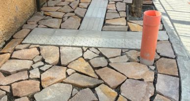 Ad Alassio, nello storico Borgo Coscia la manutenzione del marciapiede con percorsi per ciechi e ipovedenti