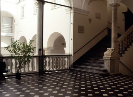 un allestimento che si inserisce, con armonia, nelle architetture del palazzo dell’antico Monte di Pietà di Savona.