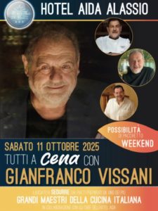 Alassio si prepara a ospitare un evento gastronomico di altissimo profilo che accenderà i riflettori sulla Baia del Sole: sabato 11 ottobre l’Hotel Aida di Via Flavio Gioia avrà l’onore di accogliere il maestro della Cucina Italiana Gianfranco Vissani.