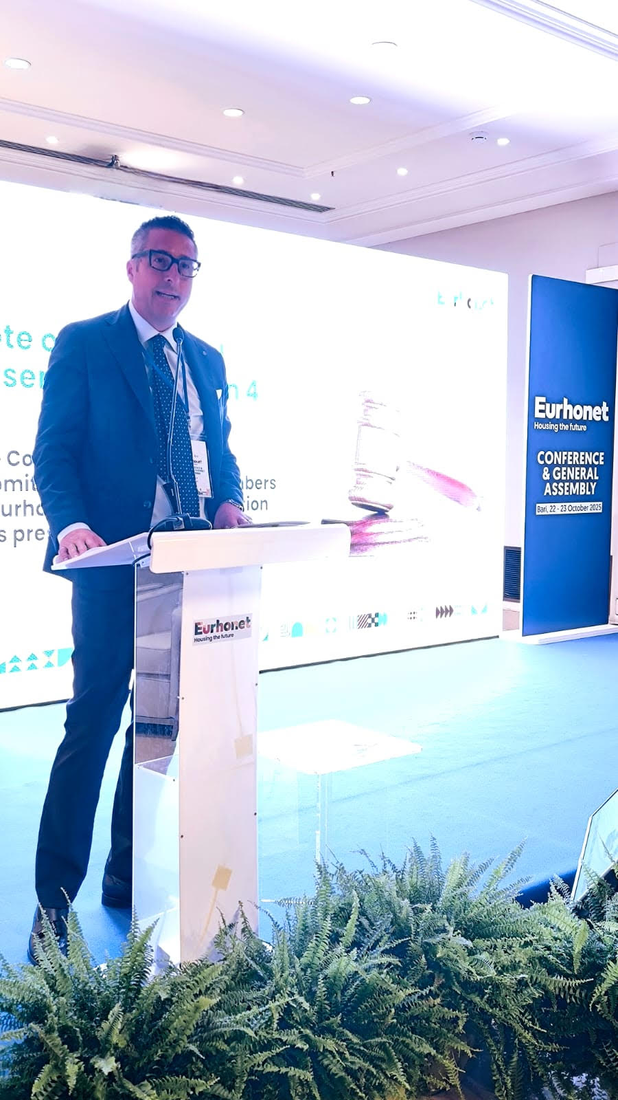 Durante l’Assemblea Generale di EURHONET – European Housing Network a Bari, l’Amministratore Unico di Arte Imperia, Antonio Parolini, è stato nominato nuovo presidente della rete europea che riunisce enti e aziende attivi nell’edilizia residenziale pubblica e sociale. EURHONET, con sede a Bruxelles, rappresenta una piattaforma strategica per discutere politiche abitative, innovazione e rigenerazione urbana, favorendo il dialogo tra i principali operatori europei del settore.