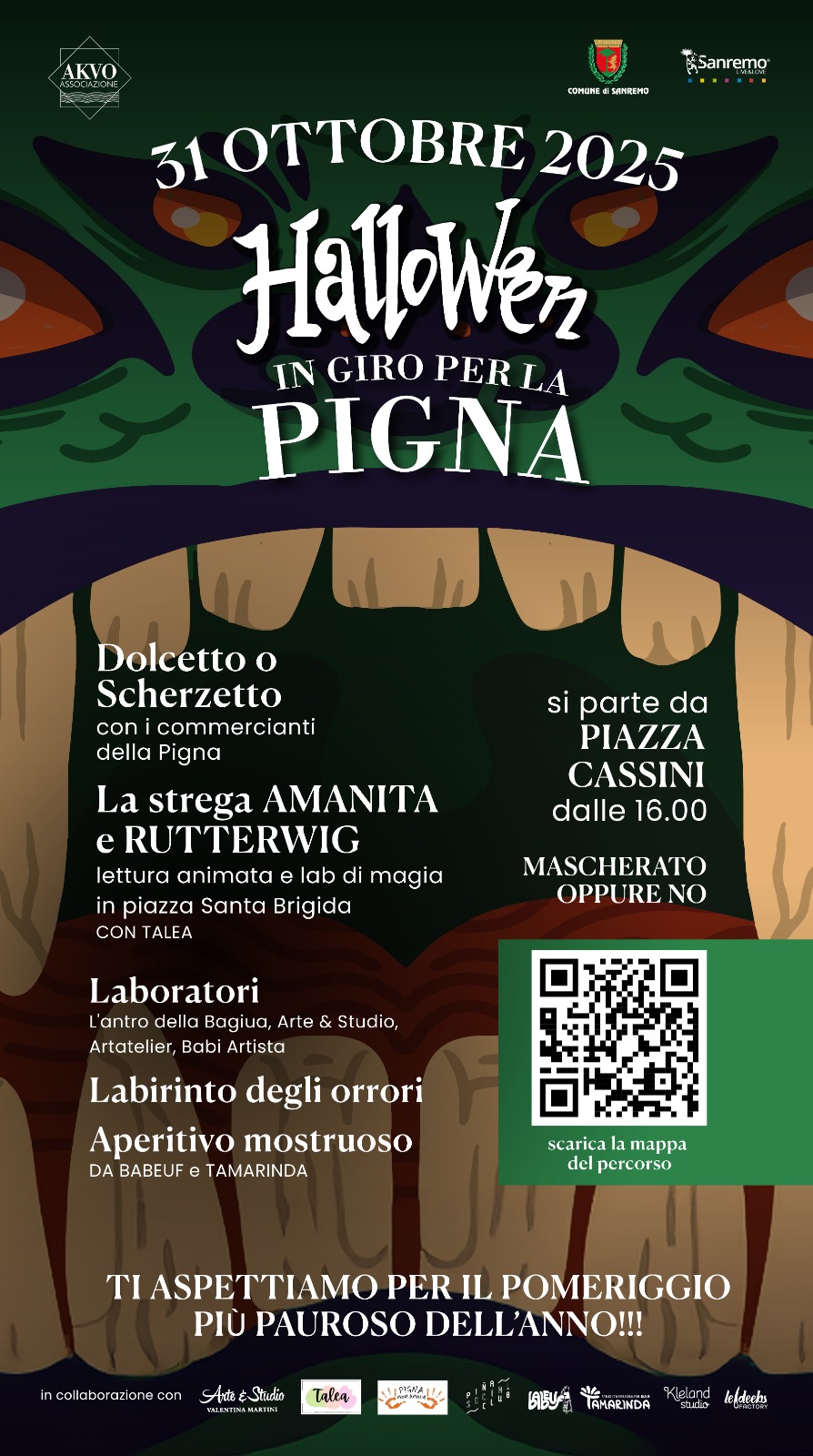 Un week-end da brividi nella Pigna e a San Romolo: oggi, dalle 16, con partenza da piazza Cassini (centro storico) grandi e piccoli sono invitati, mascherati oppure no, a partecipare ad un pomeriggio all’insegna della magia, della creatività e del divertimento con “Halloween in giro per la Pigna”! Domenica 2 novembre, dalle 14, sul prato di San Romolo, spazio alla terza edizione di “Piccoli Brividi” con animazioni, libri e truccabimbi: un’occasione per vivere il fascino di San Romolo in un’atmosfera tutta particolare! Nel dettaglio, venerdì 31 ottobre, dalle 16, il centro storico si animerà con attività per tutte le età: “dolcetto o scherzetto” con i commercianti della Pigna; “La strega Amanita e Rutterwig”, ovvero lettura animata e laboratorio di magia in piazza Santa Brigida (con Talea); laboratori creativi (a cura di L’Antro della Baguia, Arte & Studio, Artatelier e Babi Artista), labirinto degli orrori e “aperitivo mostruoso” firmato Babeuf e Tamarinda. Tutte le attività sono gratuite e senza prenotazione. In caso di maltempo, verranno svolte al chiuso negli spazi interni delle realtà coinvolte, per garantire lo svolgimento dell’evento in sicurezza e senza rinunciare al divertimento. L’iniziativa, organizzata dall’Associazione Akvo con il patrocinio del Comune di Sanremo, è realizzata in collaborazione con diverse realtà locali che contribuiscono ogni anno a rendere la Pigna un luogo di incontro e di festa. Domenica 2 novembre, invece, dalle 14, il prato di San Romolo sarà animato da spettacoli teatrali, laboratori, musica, libri, truccabimbi e tante animazioni come “Il Grande Cromosauro” (a cura di Talea). Anche in questo caso, le attività sono gratuite. “Halloween rappresenta non solo un momento di divertimento e socialità – dichiarano gli assessori al turismo Alessandro Sindoni e alla cultura Enza Dedali – bensì un’occasione per valorizzare il centro storico e il prato di San Romolo, dando così la possibilità di scoprire queste zone anche attraverso la fantasia e il gioco. Ringraziamo le diverse realtà che hanno collaborato a questi eventi, pensati per i più piccoli e per le famiglie”.