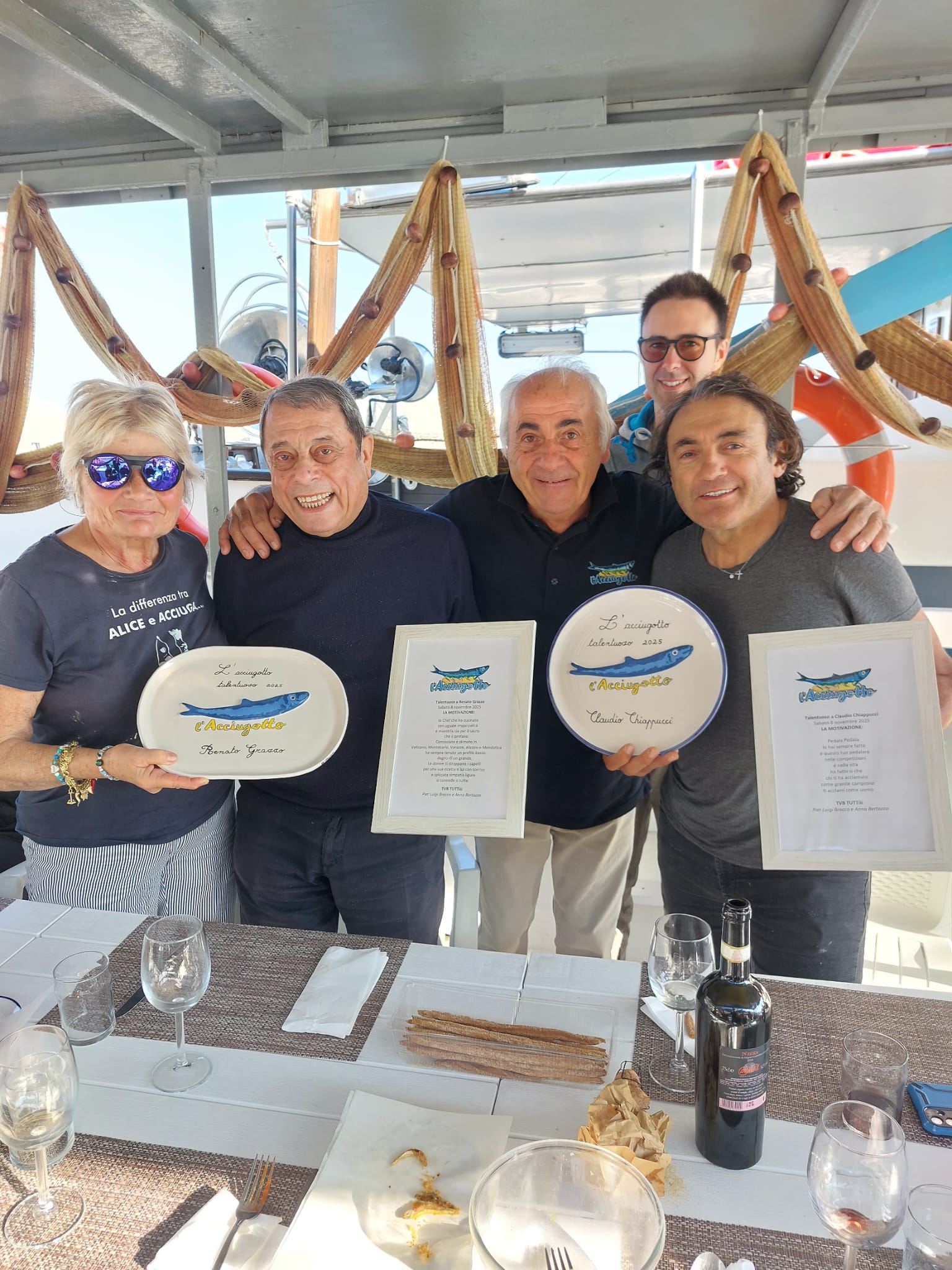 Giornata altamente spettacolare all’Ittiturismo Acciugotto, Porto Marina Ferrari banchina pescatori Alassio. Oggi in data, sabato 8 novembre, il premio L’ACCIUGOTTO TALENTUOSO 2025 è stato consegnato allo Chef Renato Grasso che ha servito i due Papi (Papà Benedetto XVI e Papa Francesco) e al campione di ciclismo Claudio Chiappucci. Motivazione per entrambi… per la purezza e semplicità delle loro imprese e soprattutto per aver apprezzato il valore dell’amicizia e buona tavola sempre presente all’Acciugotto di Anna Bertazzo e Pier Luigi Bracco.