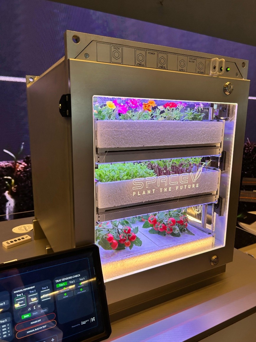 Space V ha costruito un primo prototipo di serra adattiva spaziale composto da tre ripiani di coltivazione, presentato all’International Astronautical Congress IAC 2024 (la manifestazione più grande del settore spaziale) e a Euroflora 2025, e ha ottenuto un finanziamento dell’Agenzia Spaziale Italiana per uno studio di fattibilità della serra adattiva in collaborazione con Altec (una delle principali aziende italiane per l’aerospazio).