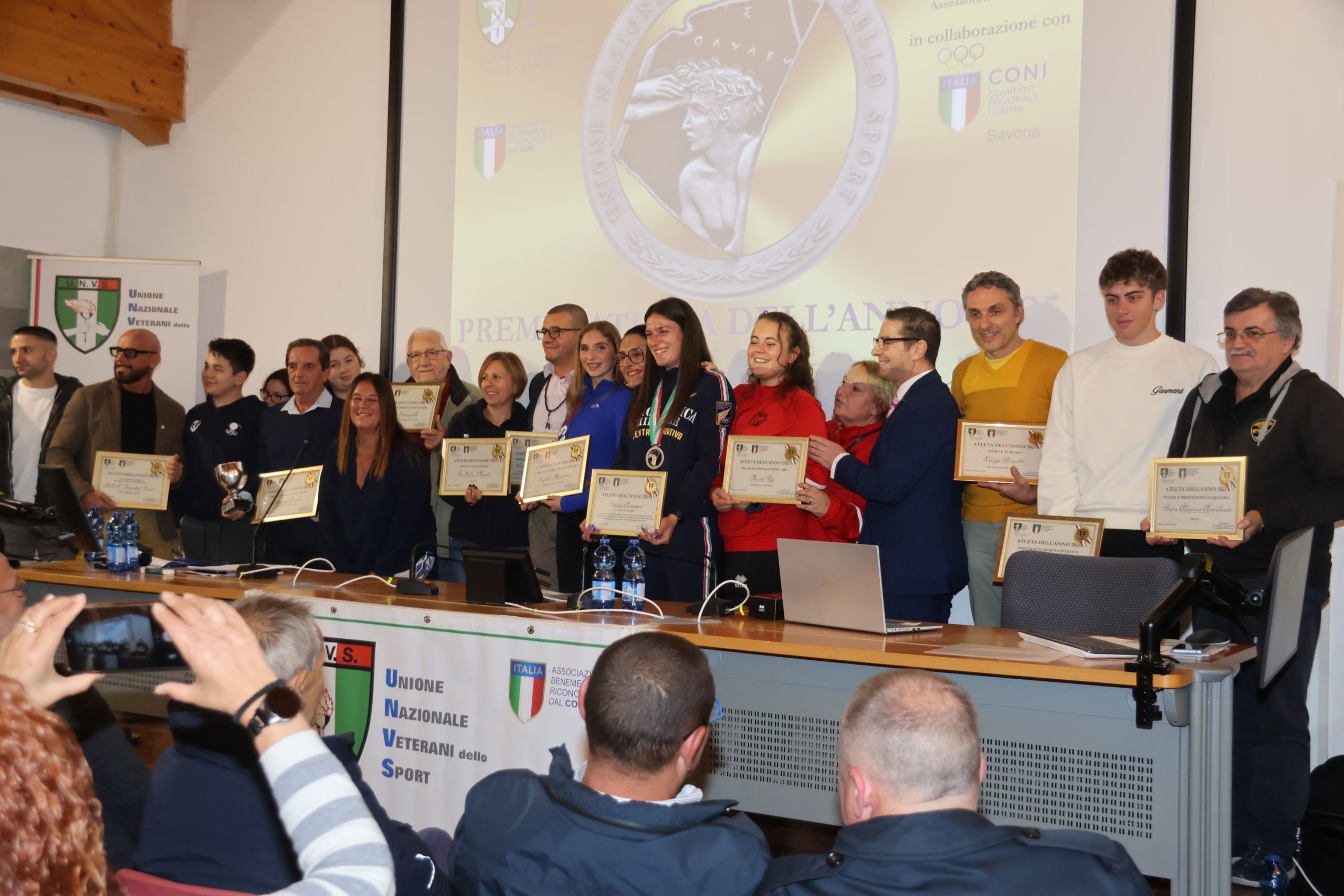 Alla presenza di una nutrita rappresentanza del mondo politico amministrativo e dei vertici di quello sportivo ligure, la Presidente di UNVS Alassio ed i membri del direttivo locale hanno consegnato i vari riconoscimenti.