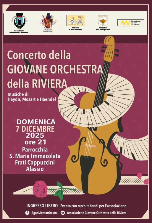 Concerto della Giovane Orchestra della Riviera domenica 7 dicembre alle 21 nella chiesa dei Cappuccini di Alassio.