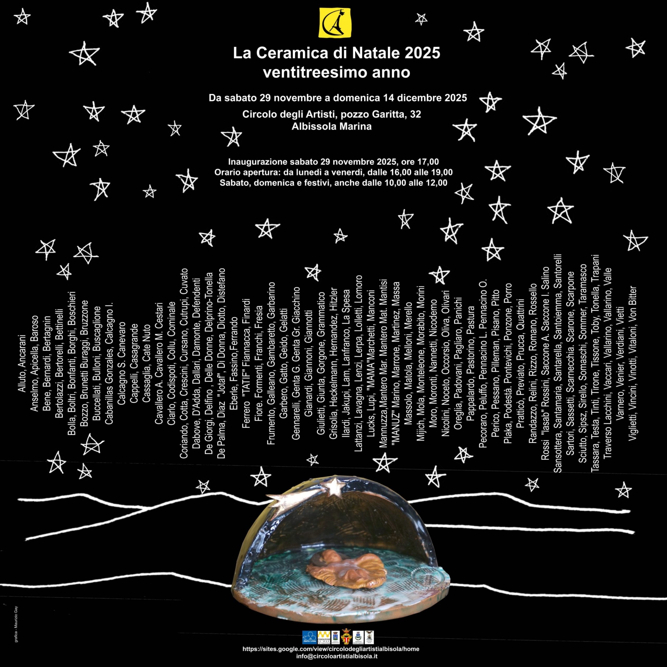 Sabato 29 novembre 2025, alle ore 17, presso la nostra sede di Pozzo Garitta, 32 di Albissola Marina, si inaugurerà la ventitreesima edizione della rassegna “La Ceramica di Natale” che si protrarrà fino a domenica 14 dicembre.