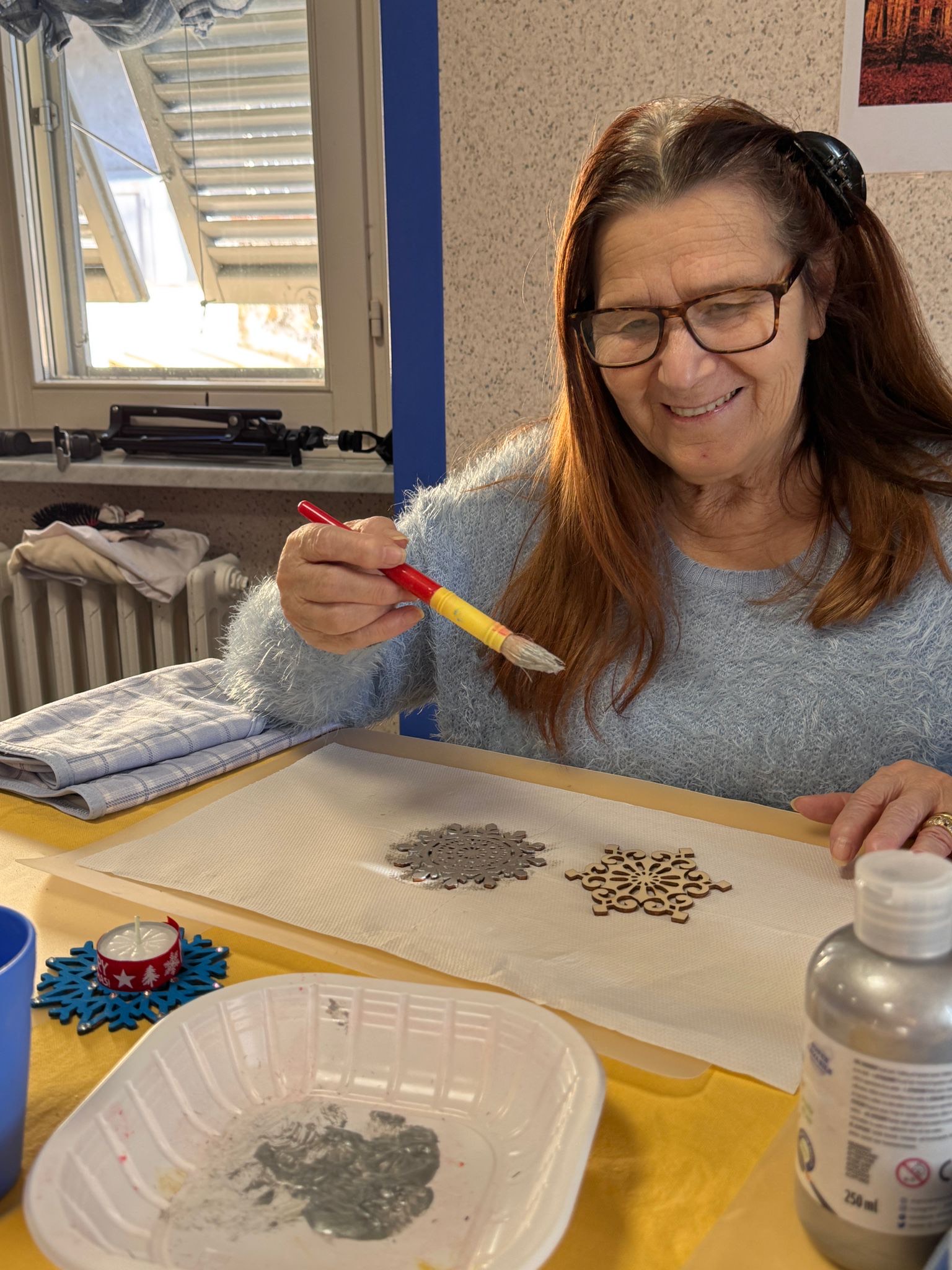 Nei reparti continuano i laboratori manuali condotti dalle psicologhe Lisa Manuello e Laura Bissolotti insieme agli educatori della struttura, che guidano gli ospiti nella creazione di portacandele artigianali. L’attività stimola manualità e creatività, favorisce la partecipazione e rende gli ospiti protagonisti dei preparativi natalizi.