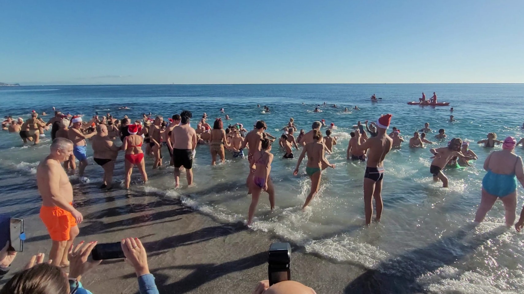 Questa mattina ben 285 persone si sono ritrovate ai Bagni Lampara per il tradizionale tuffo fuori stagione. Un caldo sole e temperature da bella stagione (l’acqua era a 14,5 gradi circa, l’aria a circa 15 gradi) hanno spinto decine di “professionisti del cimento”, residenti ed ospiti provenienti a sfidare il mare d’inverno per un bagno della durata di pochi secondi o, per i più allenati, di una decina di minuti.