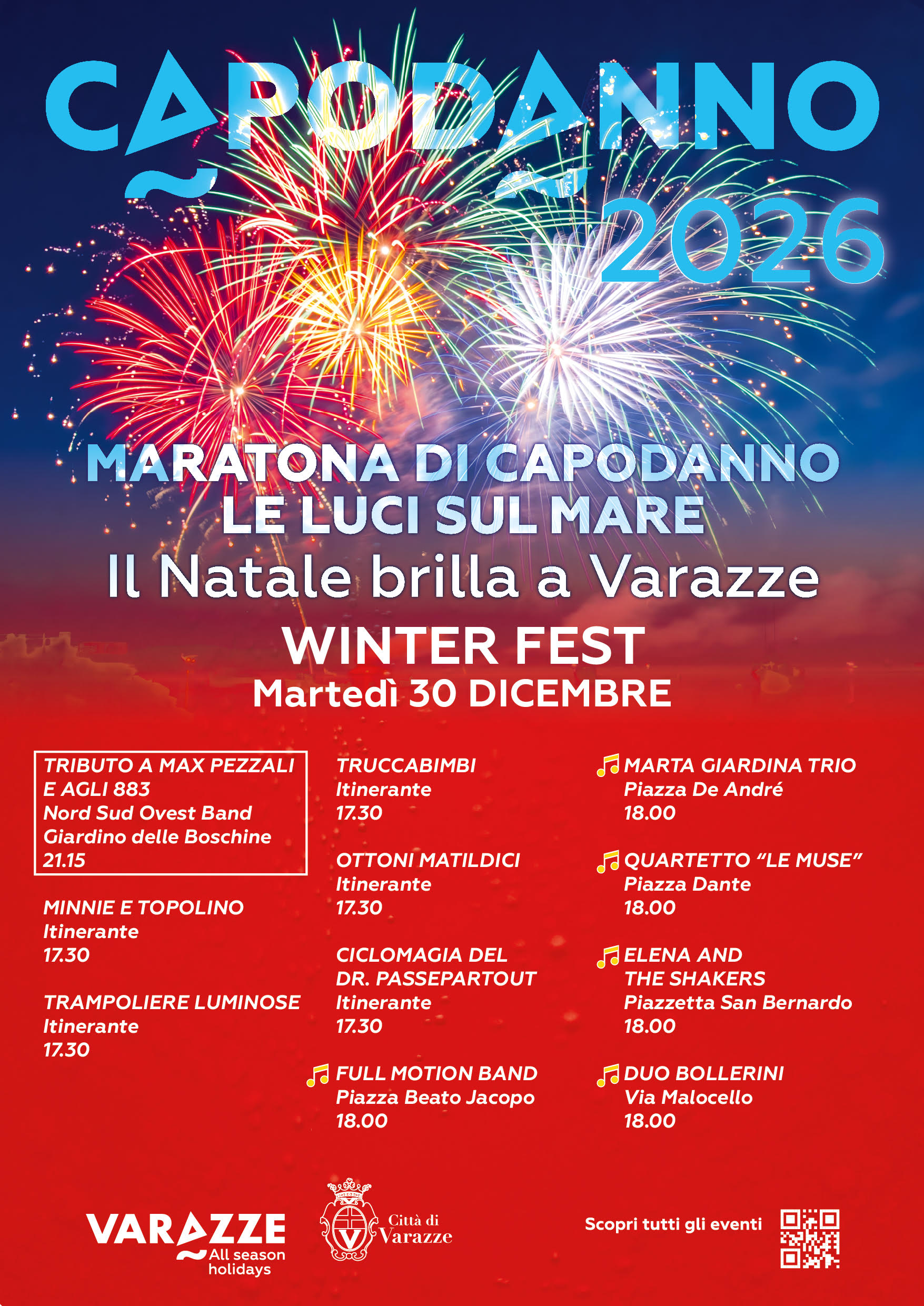 Il Varazze Winter Fest si conferma così un appuntamento imperdibile, capace di unire musica, spettacolo e intrattenimento per tutta la famiglia, creando un’atmosfera unica nel cuore della città.