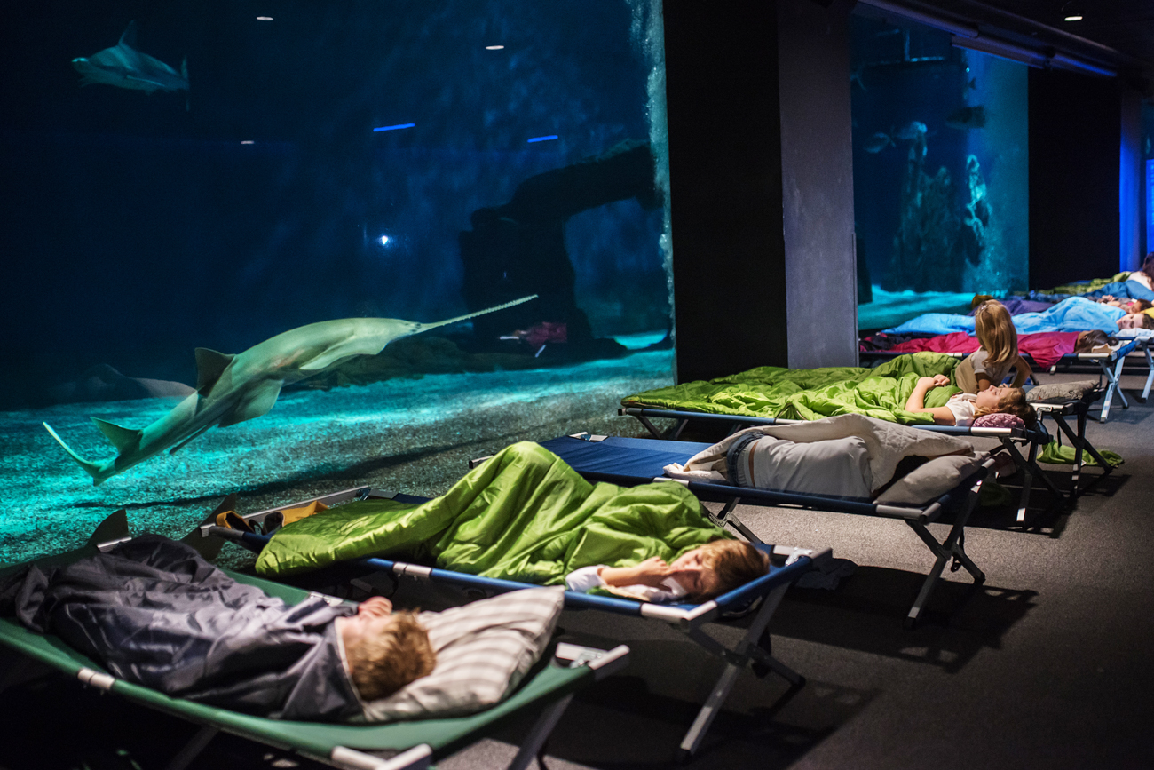 La serata si conclude davanti alla vasca degli squali dove i ragazzi vivono l’emozione memorabile di addormentarsi ammirando questi affascinanti predatori.