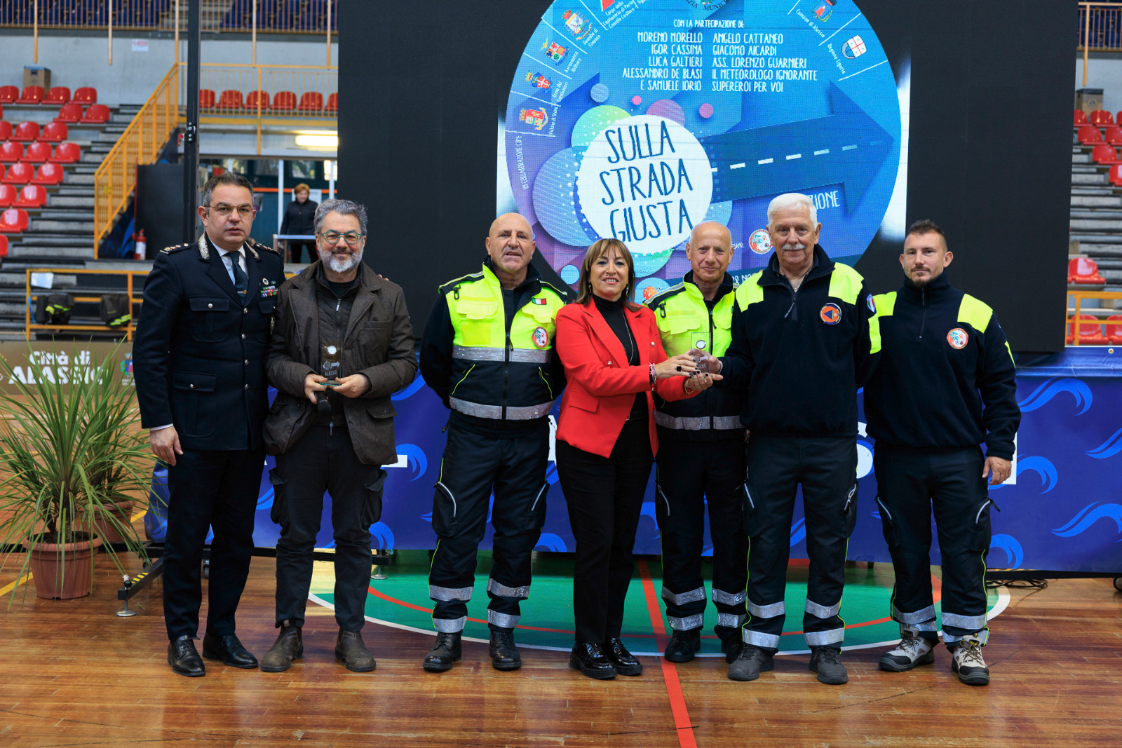 In foto: una rappresentanza del Gruppo Comunale Volontari di Protezione Civile di Alassio durante la manifestazione “Sulla Strada Giusta”, alla presenza dell’assessore alla Protezione Civile del Comune di Alassio, Franca Giannotta, del Comandante della Polizia Locale di Alassio Francesco Parrella e del presidente dell’Ordine dei Geologi della Liguria Alessandro Scarpati.