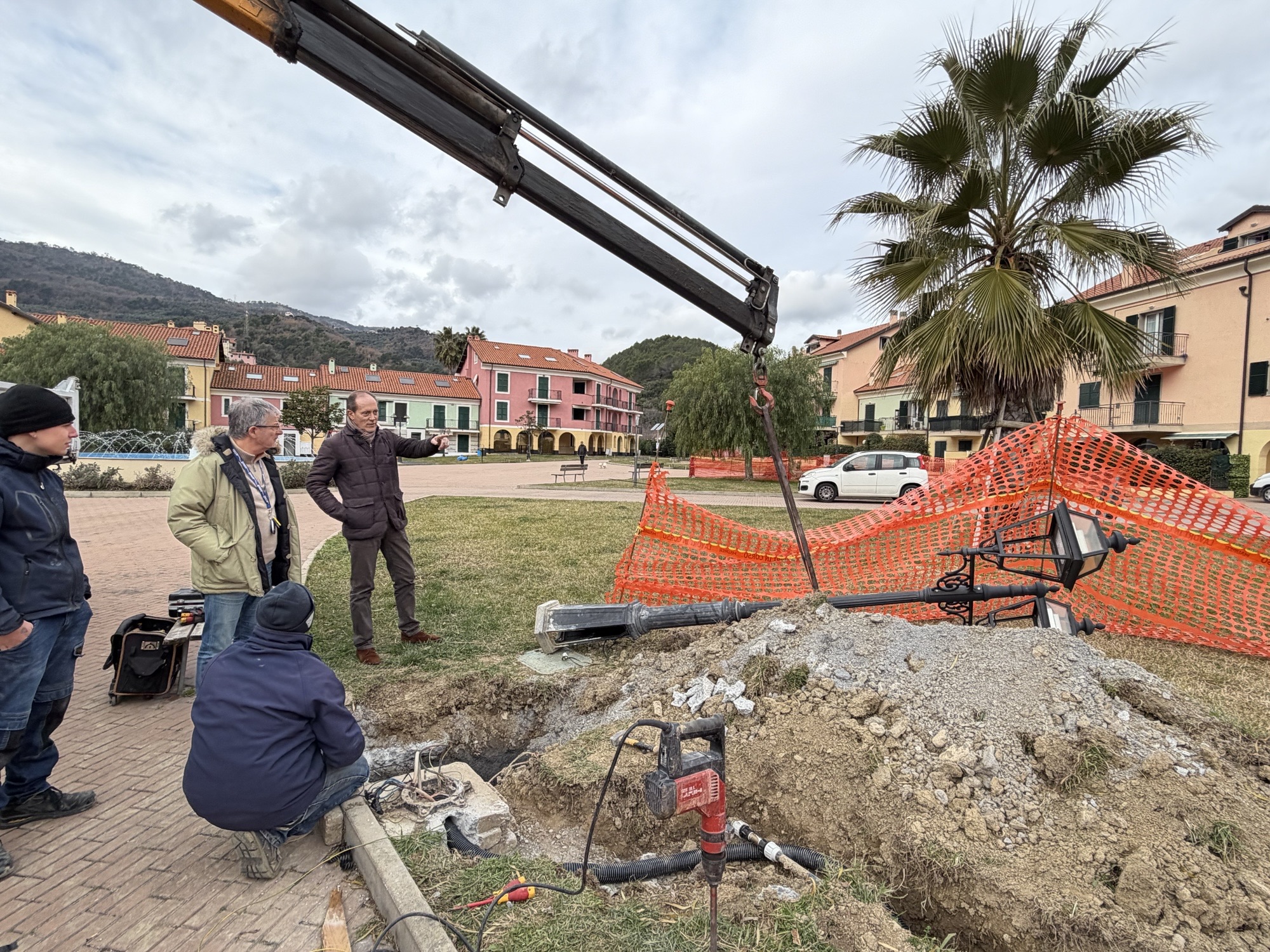 Sono iniziati i lavori di implementazione dell’ impianto di illuminazione dei Giardini Lino Giusto, nel cuore di Molino Nuovo, località residenziale di Andora.