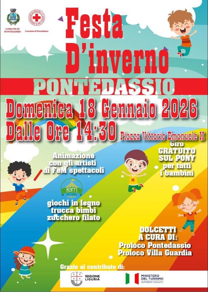 La Festa d’inverno di Pontedassio, rinviata lo scorso 21 dicembre a causa della pioggia, viene recuperata con un nuovo appuntamento dedicato a bambini e famiglie.