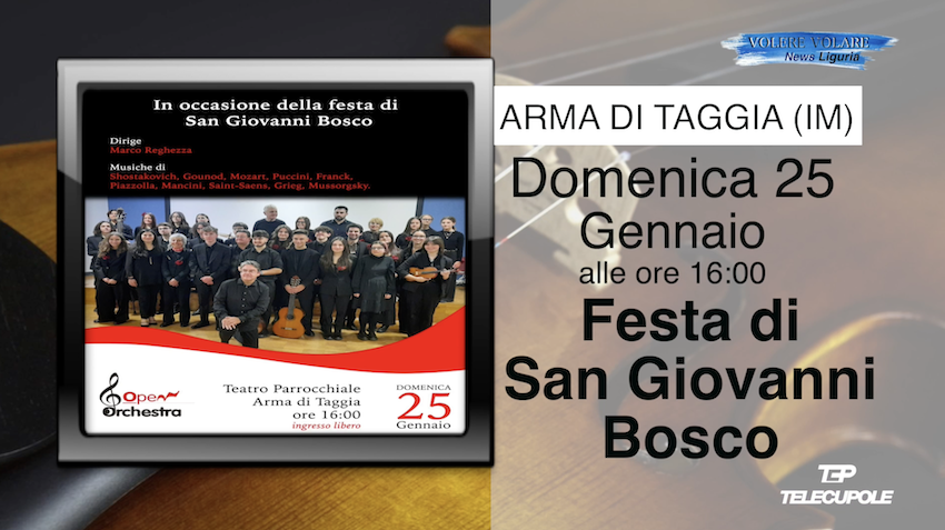 La grotta dei falsari con il giornalista Stefano Pezzini, vediamo di cosa si tratta. Rassegna culturale “Castello di Parole” a Riomaggiore SP. Le arance della salute con Airc. “Wolf 74” i guardiani celesti, il libro di Alberto Luppi Musso. Festa di San Giovanni Bosco ad Arma di Taggia