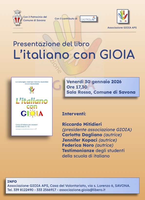 Savona, presentazione del testo “L’italiano con GIOIA” per stranieri