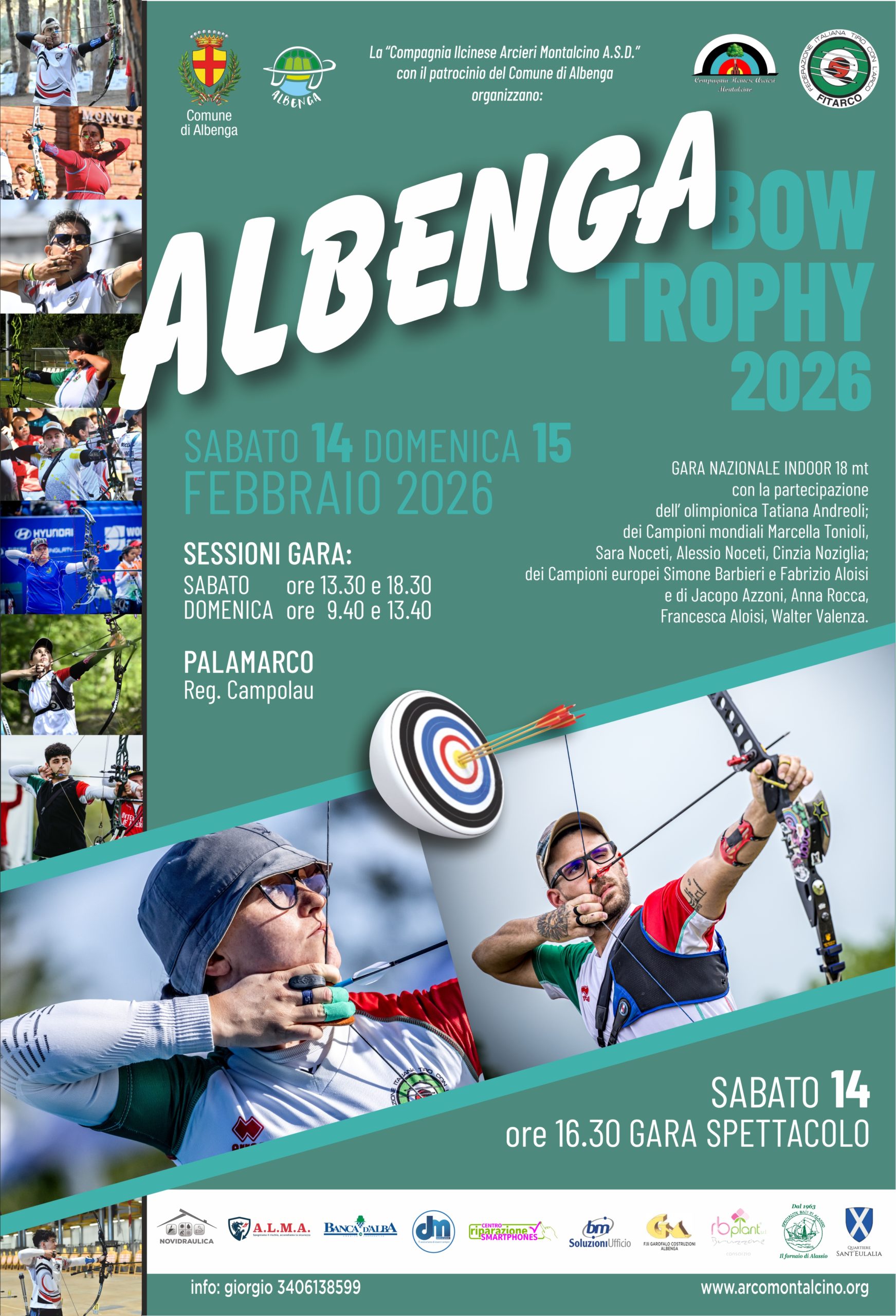Si svolgerà sabato 14 e domenica 15 febbraio, presso il Palamarco di Albenga, l’edizione 2026 dell’Albenga Bow Trophy, importante manifestazione arcieristica patrocinata dal Comune di Albenga e sostenuta da numerosi sponsor. L’evento è organizzato dalla compagnia toscana Ilcinese Arcieri Montalcino, alla quale hanno aderito diversi arcieri albenganesi insieme al tecnico Giorgio Briozzo. Sono attesi oltre 150 atleti provenienti da Liguria, Toscana, Piemonte e Lombardia, che si sfideranno sulla classica distanza indoor di 18 metri. La competizione vedrà la partecipazione di arcieri di tutte le categorie, con una significativa presenza giovanile. Tra gli atleti di punta della compagine di Montalcino figurano i nazionali Simone Barbieri – recentemente convocato per gli Europei di specialità – Marcella Tonioli, Lorenzo Pierangioli e la giovane promessa andorese Andrea Francesco Borri. L’edizione 2026 potrà inoltre contare sulla presenza di atleti di rilievo internazionale, tra cui l’olimpionica Tatiana Andreoli, la campionessa mondiale Cinzia Noziglia e i plurititolati Alessio Noceti, Sara Noceti, Anna Rocca, Walter Valenza, Francesca Aloisi e Fabrizio Aloisi. Nel pomeriggio di sabato, intorno alle ore 16.30, è prevista una gara esibizione che coinvolgerà i nazionali insieme a giovani atleti liguri impegnati nelle tre tipologie di arco. È inoltre istituito un premio speciale dedicato agli arcieri del Palio di Albenga, che gareggeranno con archi di foggia storica durante entrambe le giornate.