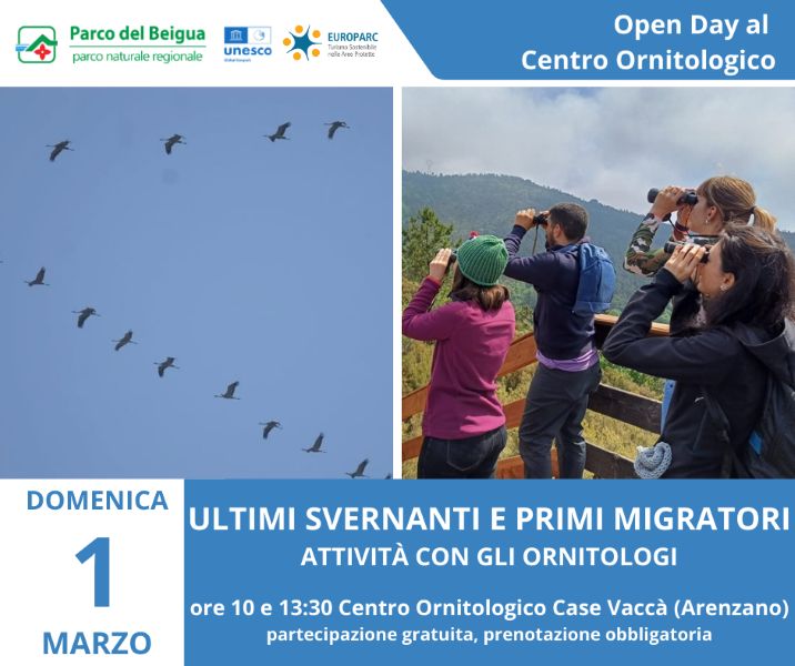 Per non perdere neanche un’occasione di osservare questo straordinario spettacolo della natura, che ogni anno ci sorprende e affascina, tornano gli open day al Centro Ornitologico del Parco del Beigua a Case Vaccà, sulle alture di Arenzano.