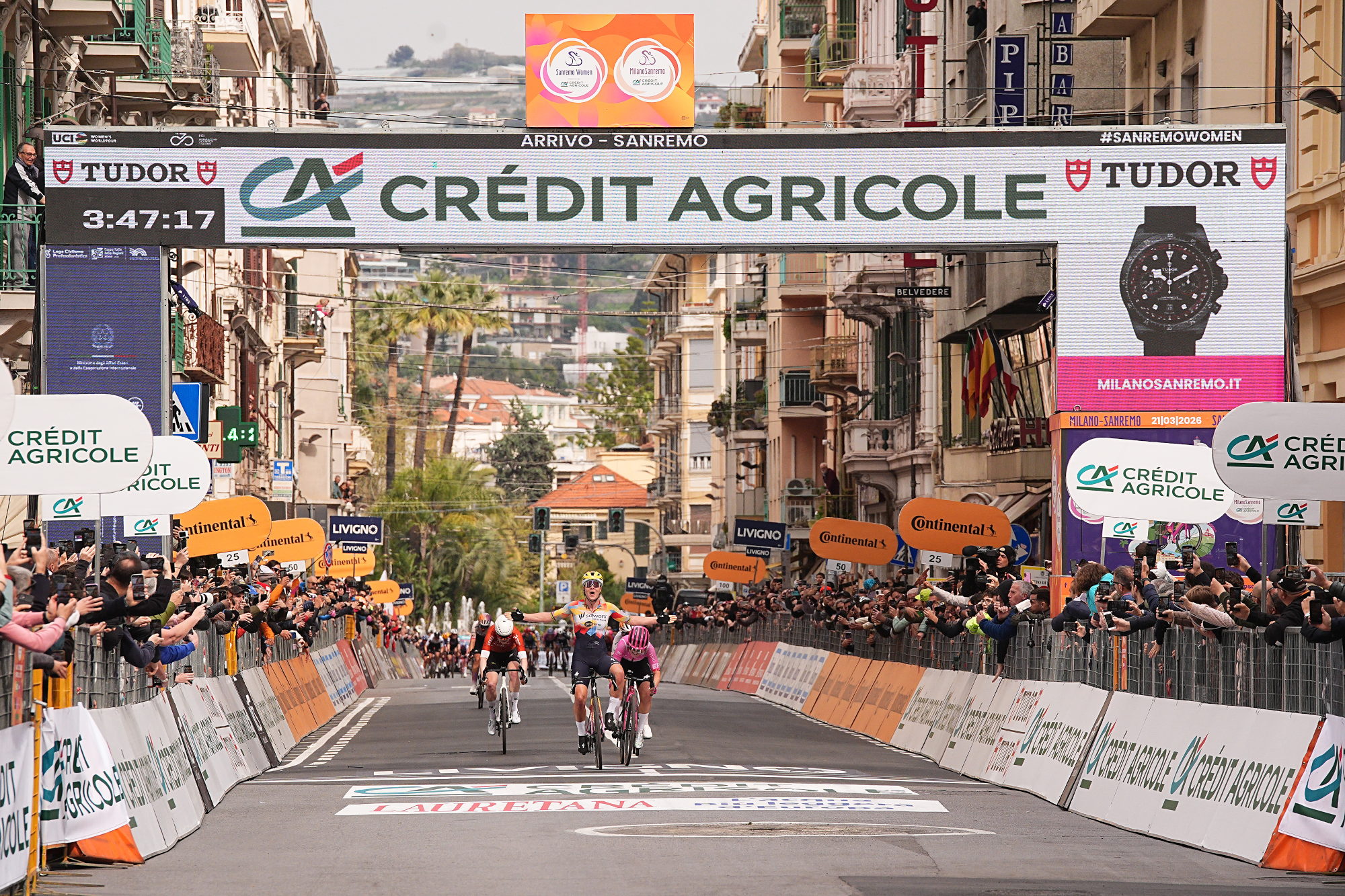 Pochi secondi dopo aver tagliato il traguardo, la vincitrice della 2^ Sanremo Women presented by Crédit Agricole, Lotte Kopecky, ha dichiarato: “È una vittoria davvero speciale. Ho avuto un grande supporto da parte delle mie compagne di squadra dall’inizio alla fine e ci siamo prese la responsabilità di condurre il gruppo per tutta la gara. Ero molto felice di essere davanti sul Poggio: sapevo che con un buon vantaggio saremmo potute arrivare fino a Sanremo. In volata sono riuscita a finalizzare il lavoro di tutto il team, e di questo sono contentissima”.