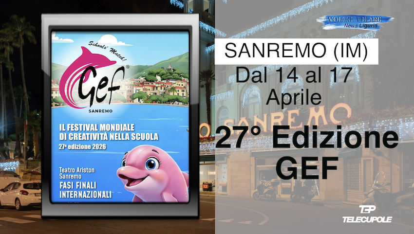 A Sanremo al Teatro Ariston e al Teatro dell’Opera del Casinò Municipale si svolgerà la 27^ edizione del GEF il Festival Mondiale di Creatività nella Scuola. Canto, musica, musical, danza, ginnastica ritmica ed artistica, teatro, moda, e la finale mondiale di Sanremo Junior giunto alla sua 17^ edizione. Siamo stati ad Alassio per assistere allo spettacolo “Niente progetti per il futuro” con Lorenzo Cordara e Matteo Pisu, appuntamento conclusivo della rassegna teatrale “Alassio a Teatro” 2025/2026, e questo è il nostro servizio, che vede anche un disturbatore d’eccezione. Corsa e camminata per le donne “Corri per Lei”, passeggiata ludico motoria ad Arma di Taggia. Il giornalista enogastronomico Stefano Pezzini ci porta in Val Bormida e precisamente a Cairo Montenotte per una specialità culinaria locale con alle spalle una storia particolare.