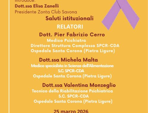 Savona unita per la Giornata del Fiocchetto Lilla: Zonta Club Savona e ASL2 insieme contro i Disturbi del Comportamento Alimentare