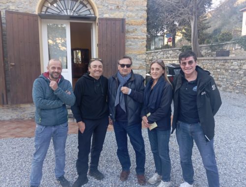 Claudio Chiappucci e Gianni Bugno in visita alla Raineri di Imperia